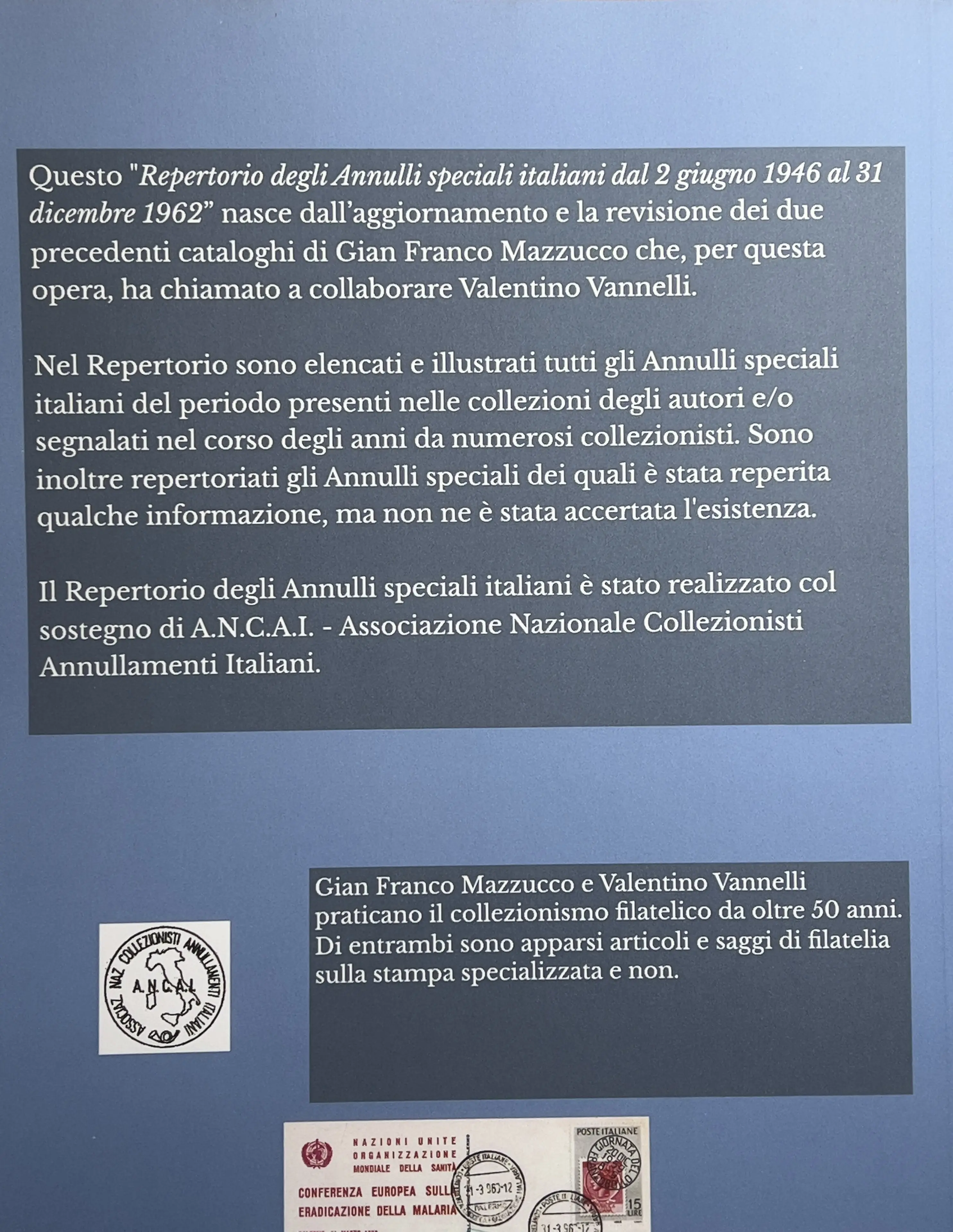 AngeloCF Inviato 1 ora fa Supporter #1 Inviato 1 ora fa Segnalo l’uscita di questo libro che ho appena preso “repertorio degli annulli speciali italiani” dal 2 giugno 1946 al 31 dicembre 1962. Se qualcuno è interessato lo può trovare su Amazon. 1