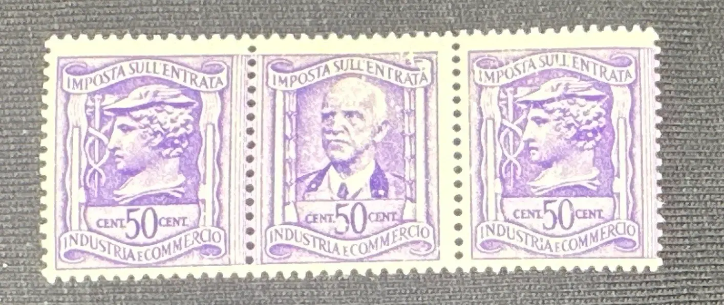 PostOffice Inviato 2 ore fa #2 Inviato 2 ore fa (modificato) Marche per imposta sull'entrata Industria e Commercio, 50c viola, emissione del 1940/46, con fasci, filigrana corona dentellature varie. La tua striscia e' completa della matrice e figlia solo da sx nelle prime due marche.. Il valore "di catalogo" della striscia di tre e' sui 9/10€ allo stato di nuovo, il valore di mercato molto meno 2/3/€, allo stato di nuovo sono rare pertanto puoi anche non considerare l' abbietto valore di mercato e chiedere tranquillamente quello di catalogo. Non vanno staccate la striscia va lasciata com'è. Modificato 2 ore fa da PostOffice