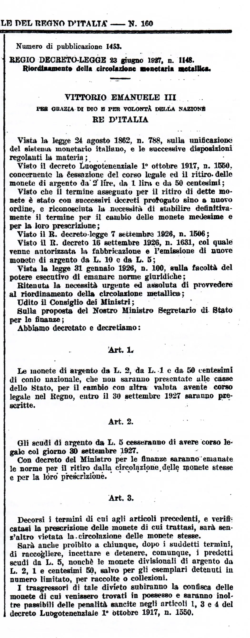 bizerba62 Inviato Sabato alle 06:47 #5 Inviato Sabato alle 06:47 14 ore fa, incuso dice: Grazie delle informazioni, sarei anche curioso su cosa incorressero i detentori di tali monete dopo il 30 aprile 1928... (detentori a cui rammentiamo dobbiamo tutta la nostra gratitudine ) Vedi allegato 6 1 Cita