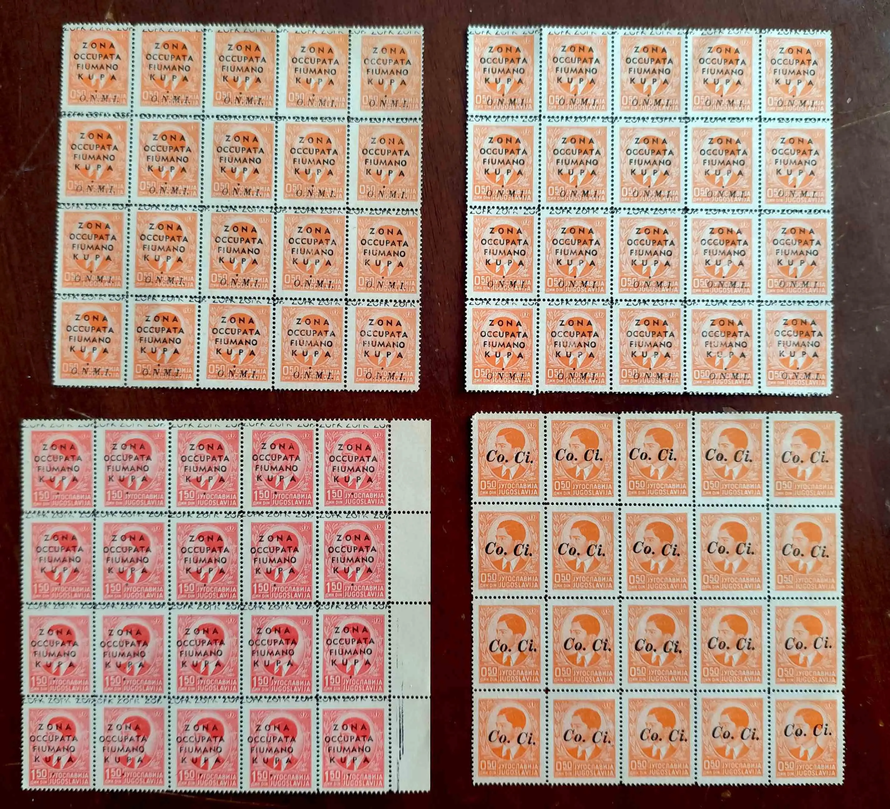 marco1972 Inviato 2 ore fa #2 Inviato 2 ore fa (modificato) L'1,50 rosso (terzo francobollo) è del 16 maggio 1941. E' un'emissione Jugoslava sovrastampata con ZONA OCCUPATA FIUMANO KUPA e ZOFK ripetuto a cavallo della dentellatura orizzontale. Lo 0,50 sei primi due è un francobollo della serie precedente sovratampati anche con ONMI (opera nazionale maternità infanzia) emesso il 16 giugno 1941. L'ultimo è sempre una si stampa di un francobollo jugoslavo emessa il 16 aprile 1941 per Lubiana. La sovrastampa significa Commissario Civile. Per l'autenticità purtroppo non riesco ad aiutarti anche perché le sovratampe del periodo sono molto insidiose. Modificato 2 ore fa da marco1972