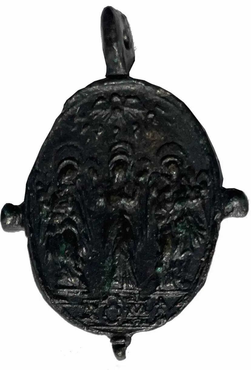 lucerio Inviato 1 ora fa #1 Inviato 1 ora fa non riesco a identificare i tre personaggi : al centro la Madonna e ai suoi lati? l'immagine ha segni di ribattitura ma mi sembra di vedere che hanno le ali. Borgho mi aiuti? grazie Cita