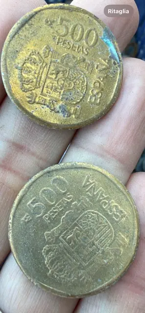 nikita_ Inviato 31 minuti fa Supporter #2 Inviato 31 minuti fa (modificato) Ciao, monete da 500 pesetas non più convertibili in euro, a suo tempo 100 pezzi erano 50.000 pesetas, circa 300 euro al cambio. Furono coniate la prima volta nel 1987 per il 25° anniversario del matrimonio di Re Juan Carlos e Sofia. Moneta comunissima prodotta in centinaia di milioni di esemplari, ormai si trovano facilmente nei mercatini a 50cent/1euro al pezzo. 43 minuti fa, Goneeday dice: Buongiorno a tutti , ho trovato in casa di un mio parente circa 100 monete in foto , volevo chiedere di cosa si tratta , grazie a tutti voi . Modificato 29 minuti fa da nikita_ Cita Awards