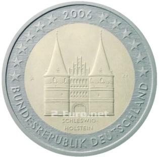 La notizia di Alteras è confermata, infatti il primo stato commemorato è proprio lo Schleswig-Holstein, con l'Holstentor Lubeck come motivo sulla moneta.