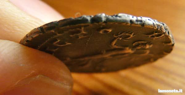 Mah, Commodo mi piace poco, i rilievi sono molto spianati e in più vedo una gragnuola di bucherelli, come fosse stato impallinato...dalle bolle di fusione. Però non ci posso giurare.Certo, l'hai pagata un po' pochino.