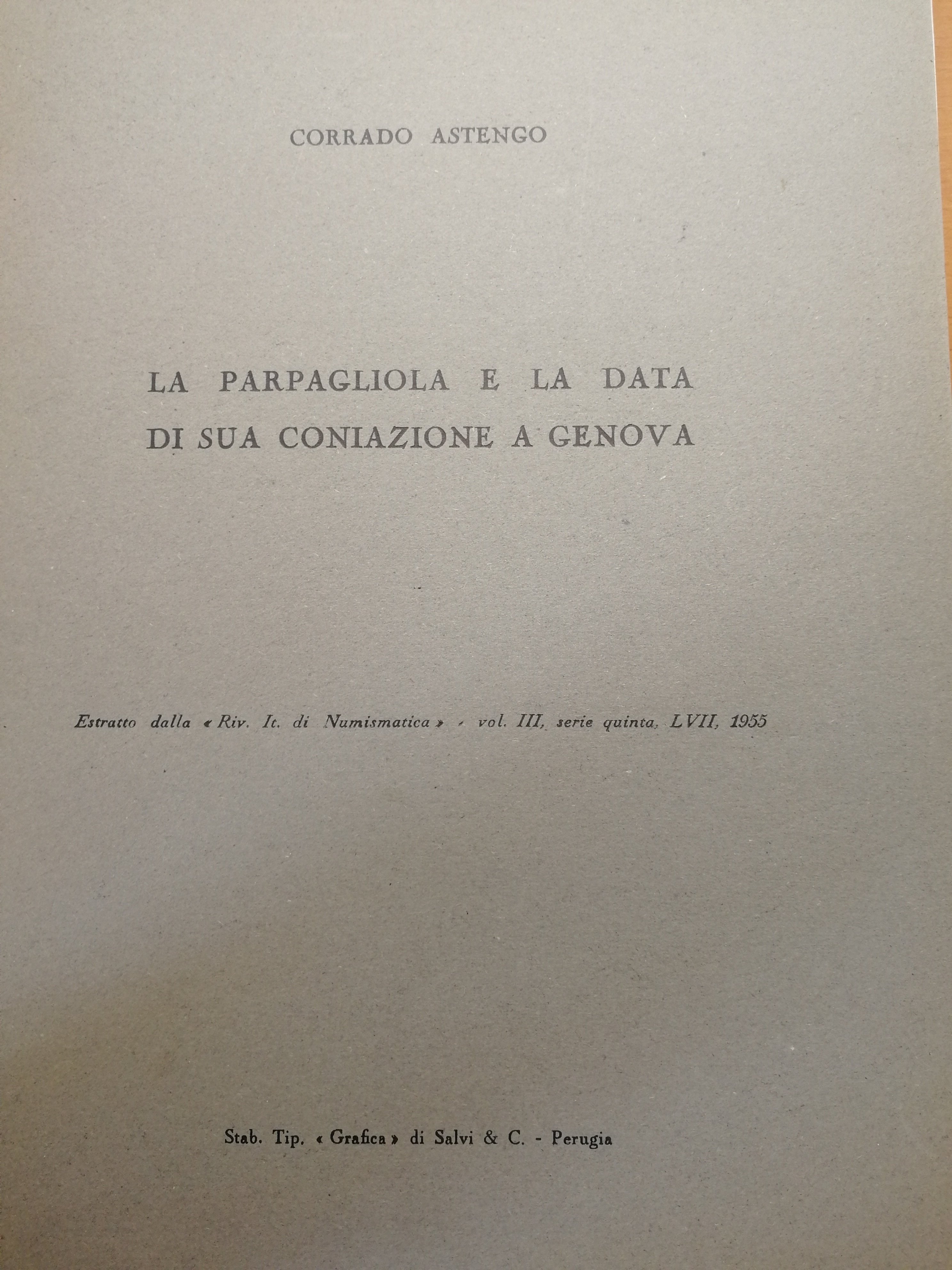 Corrado Astengo: la parpagliola e la data di sua coniazione a Genova. Estratto da RIN del 1955.