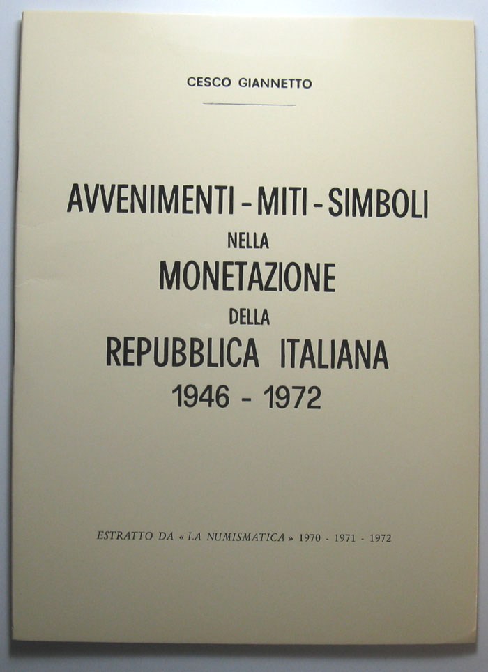Giannetto Cesco Avvenimenti Miti Simboli nella monetazione della Repubblica Italiana 1946-1972 estratto da La Numismatica 1970-71-72