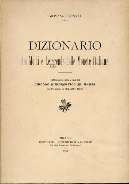 DONATI Giovanni, Dizionario dei Motti e delle Leggende delle Monete Italiane,Milano, C.Crespi Editore, 1916