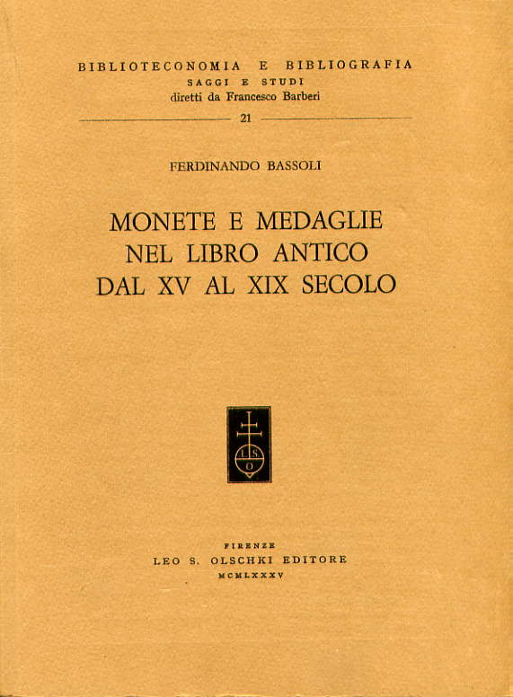 BASSOLI Ferdinando , Monete e Medaglie nel Libro Antico dal XV al XIX secolo,saggi e studi diretti da Francesco Barberi Firenze Olschki 1985.