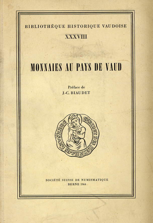 BIAUDET J.C. Monnaies au pays de Vaud.Bibliotheque Historique Vaudoise XXXVIII Societe Suisse de Numismatique ,1964 Berne