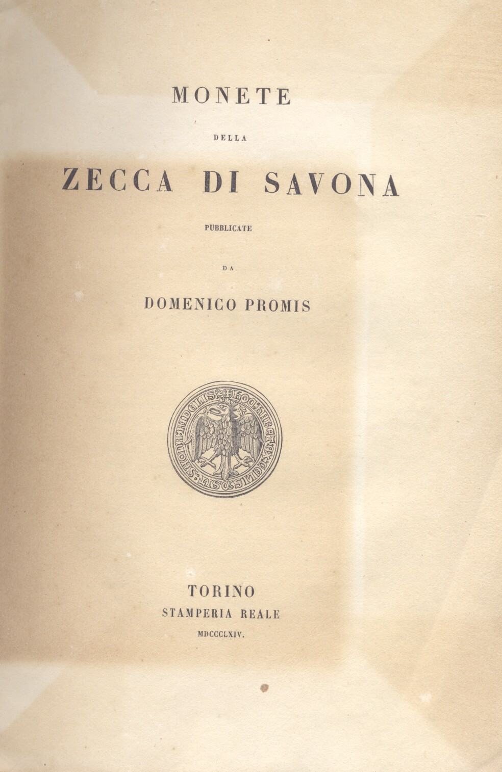 PROMIS DOMENICO. MONETE DELLA ZECCA DI SAVONA. TORINO STAMPERIA REALE 1864