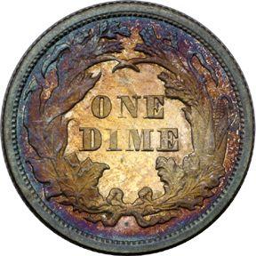 è molto semplice,sul retro sotto la corona d'alloro,c'è la classica letterina identificativa della citta in cui la moneta fu coniata,stando all'esempio,per i dime del 1875,ci sono tre possibilita:una S per san francisco,CC per carson city,mentre se non è presente alcuna lettera allora la zecca è philadelphia(negli anni piu recenti philadelphia è contrassegnata da una P)