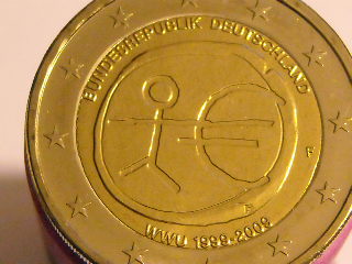 Da notare la data di conio delle monete tedesche, 28/10/2008.