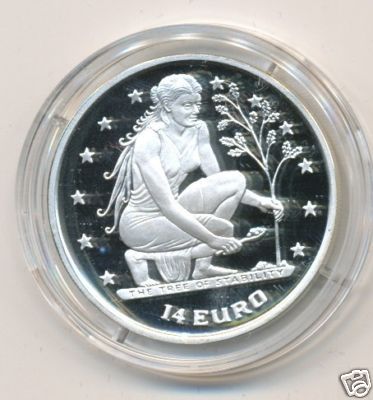 KM #88 14 Euro 1996 proof, peso 10 gr., argento 0,925, tiratura (stimata) 20.000 pz, valore nel 2005 35$