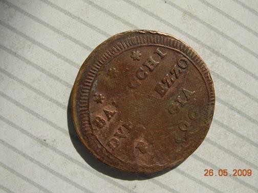 E' una moneta da due Baiocchi e mezzo e anche se la scritta è un po' cancellata si riesce a leggere 1796 Perugia. Il diametro è 3cm (da righello! :unsure: )
