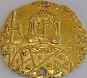 Busti affiancati di Costantino V e Leo IV senza barba ciascuno portante corona e Clamide, croce in corrispondenza del foro.