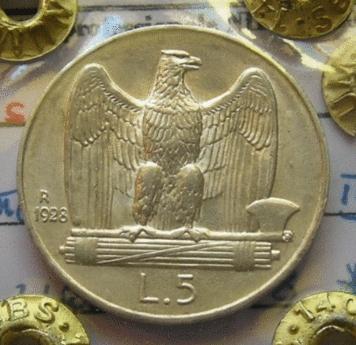 piergi00 Inviato 3 Settembre, 2009 #1 Inviato 3 Settembre, 2009 Nuovamente vi presento un aquilotto appena entrato in collezione per sostituire un precedente esemplare Dalla Gazzetta Ufficiale n.231 del 5 ottobre 1926 Diritto L' effigie sovrana a collo nudo rivolta a sinistra e circolarmente la leggenda in caratteri lapidari romani "VITTORIO EMANVUELE III RE D'ITALIA" in basso sotto al collo "G. ROMAGNOLI" (autore del modello ) e " A. MOTTI INC. " (incisore capo della Regia Zecca). Rovescio L' aquila sabauda di fronte con la testa a destra e con le ali spiegate , poggiando con gli artigli sul Fascio Littorio disposto orizzontalmente , con taglio della scure in alto ; a sinistra "R" (Roma) sotto, il millesimo di coniazione. Nell' esergo L. 5 valore della moneta Contorno In incuso "FERT" con stelle a cinque punte e nodi di Savoia (nel contorno anziche' stella come descritto dalla Gazzetta Ufficiale si nota rosetta a cinque petali) Argento 835 , diametro 23 mm. , peso giusto 5 gr. , peso massimo 5.025 gr , peso minimo 4.975 gr Per l' anno 1929 tiratura di 9.9076.540 pezzi Regio Decreto n.1651 del 30 settembre 1926 Con il Decreto ministeriale 18 gennaio 1937 vengono poste fuori corso in data 31 dicembre 1945 con ultimo termine per il cambio cambio il 31 dicembre 1947 MIR 1137d ; Gigante 75