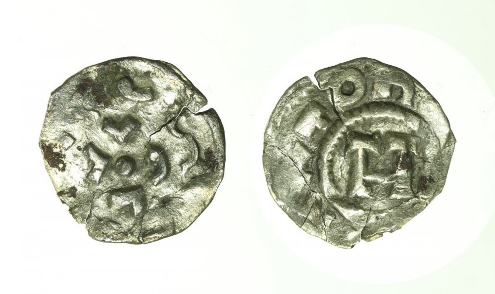 Sarebbe interessante fare un confronto con le monete trovate in tomba (1230). Ragionevolmente, dovrebbero essere i tipi con segni particolari al centro del rovescio coniati nei primi tre quarti del XIII secolo.