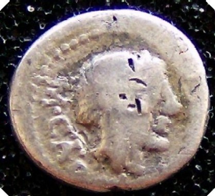 quindi, posso supporre che anche la mezzaluna presente sul volto di Roma di questo denario della gens Porcia (Crawford 270) potrebbe essere un marchio simile?