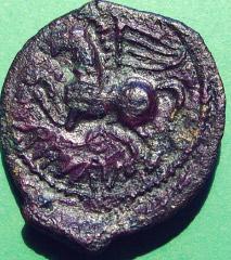 Quando siete stufi di queste celtiche, fate un fischio! Questo bronzo è attribuito agli Abudos, mi sembra, ma non sono riuscito a individuarli geograficamente. Pesa 3,3 g. e misura 16 mm.