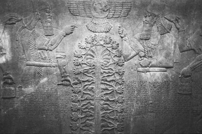 Ed ecco un altro bassorilievo sembre Sumero in cui ai lati sono due uomini (alle loro spalle si trovano invece due semidei) le cui barbe somigliano a quelle dei due minotauri del sigillo con in alto il disco solare e al centro una porta (la porta di legno di cedro che si menziona nell'epopea di Gilgamesh).