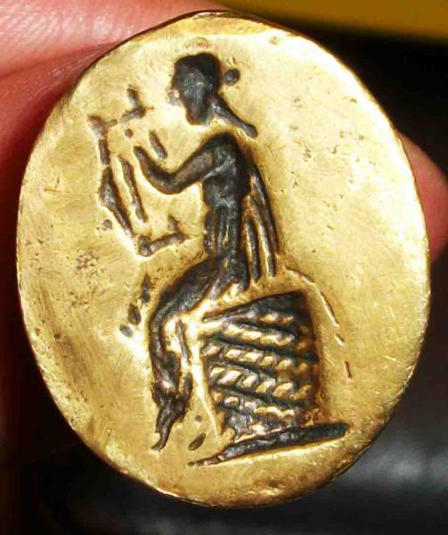 sembra una copia tratta da una gemma incisa, di gusto classico con la rappresentazione, forse, di Tersicore (musa della Musica)