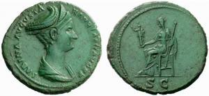 Non c'è che dire, bel ritratto, proponi sempre belle monete, dovrebbe essere proprio il Il RIC 1036, l'unico sesterzio di Sabina con Vesta.
