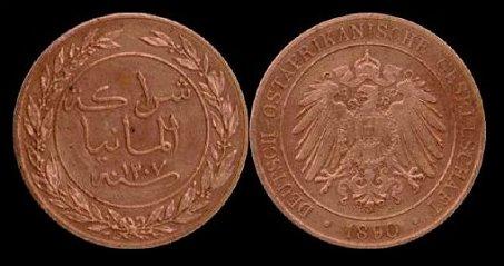 Questa moneta, come le successive, è emessa in nome dell'imperatore, mentre la denominazione della Società è "relegata" sul rovescio e scompaiono legenda e millesimo arabi. La raffigurazione del Kaiser, quasi assente nelle monete tedesche, coniate per l'effettiva circolazione, è da ricercarsi nelle corrispondenti monete indiane, nelle quali era effigiata l'imperatrice Vittoria.