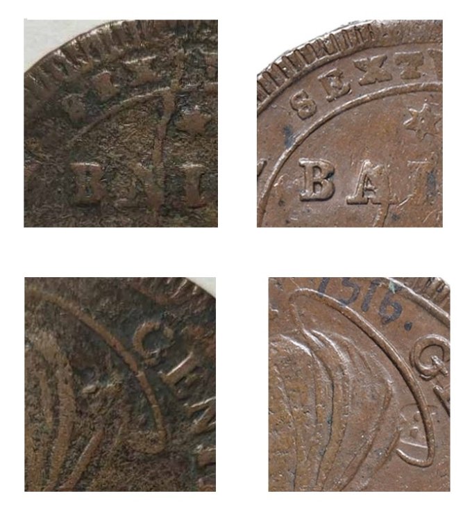 Da notare le debolezze sul volto della madonna al rovescio e corrispondente nel campo del diritto, probabile che per via dello spessore della lamina inferiore al solito, i conii non fossero adeguatamente regolati per dare la pressione necessaria.