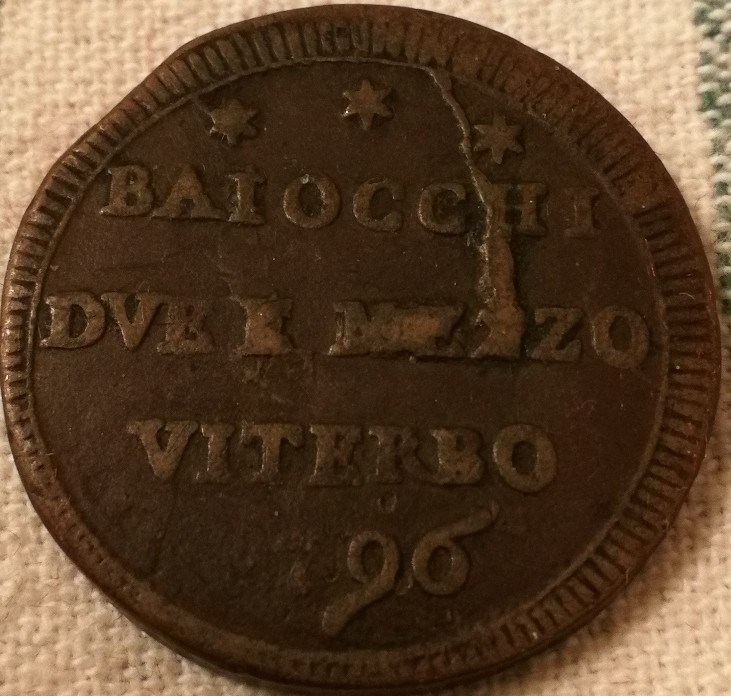 Primo esempio: Sampietrino zecca di Viterbo 1797.