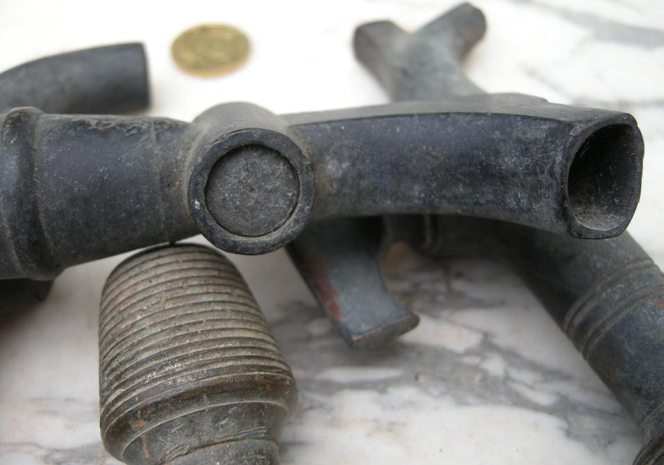 quelli che possedeno un bolone sotto....di certo,son piu recenti.....per via che la pressionne aumentava con canalizazione moderne..... :unknw: ....ma quelli altri,senza quel attrezzo di bulonatura....eranno piu anziani,e antici.......il bronzo fuzionato li an datto lettera di nobilezza......... :lol: post-22197-0-92613000-1367682381_thumb.j