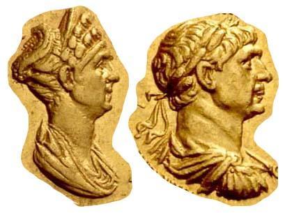 Nell'immagine che segue possiamo vedere come la regina fosse rappresentata, in Egitto (a sinistra) e a Roma, in una comparazione dei ritratti del famoso Denario.