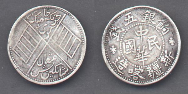 niente di anomalo con la presenza di scritte con caratteri arabi, si trovano anche sulle banconote odierne della Republica Popolare... e si trovavano spesso sulle coniazioni delle province cinesi occidentali (Sinkiang)