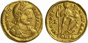 Ma poi, quando riceve (o prende) la porpora… zacchete… un bel barbone. Da glabro fortunato. Vince spedizioni militari in Europa. Sta per scontrarsi con Costanzo II e questo schiatta. Ma poi si fa crecsere il barbone, s'imbarca nell'invasione della regione orientale e vista la fine forse… ‘sto barbone porta veramente male… (anzi no… Valens è glabro e a Adrianopoli non è che sia andata così bene).