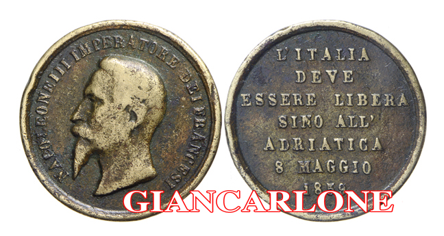 Già postata a pag.6 post 126, aggiungo quella che ho in collezione. Come si legge al rovescio MEDAILLE GEGRAFIQUE DE LA GUERRE D'ITALIE  -  1859