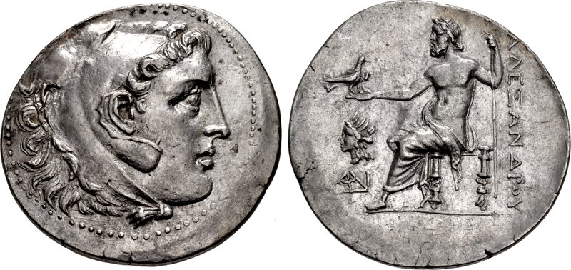 KINGS of MACEDON. Alexander III ‘the Great’. 336-323 BC. AR Tetradrachm (32mm, 16.90 g, 11h). Kabyle mint. Civic issue, struck circa 230/25-218 BC. Head of Herakles right, wearing lion skin / Zeus Aëtophoros seated on throne left, which has legs decorated with sphinxes; to inner left, Artemis Phosphoros standing facing holding two torches. Price 882. Good VF.