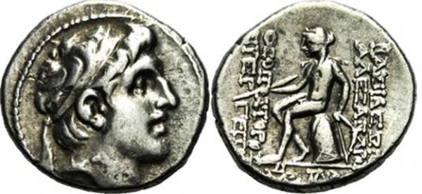 Ho una dramma di Alessandro I Bala (“Signore”) Epifane ("Manifestazione del dio"), re di Siria dal 150 al 145 a. C., che sulle sue monete è raffigurato con mento forte e occhio incavato, e in alcune di esse tende ad assomigliare ad Alessandro il Grande.