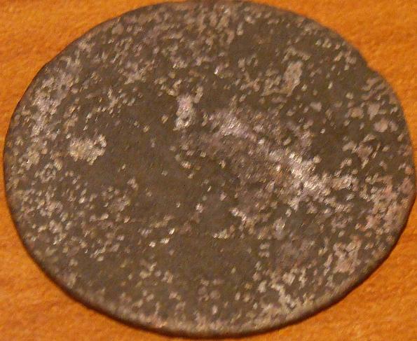 Vediamo se posso esservi di aiuto, il presunto "uccello" sul retro è contornato da una corona tipo alloro, mentre le uniche lettere che si intravedono sembrano essere: Russuani o una cosa del genere...la moneta è nera perchè secondo mè è stata bruciata...
