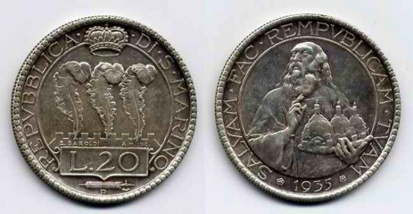 Giusto questa mattina ho aggiunto questo 20 lire 1933 San Marino , alla collezione.