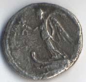 Augusto AR quinario. A nord del Peloponneso (?) Menta, ca 21 aC. AVGVSTVS, testa nuda a destra / Vittoria in piedi a sinistra sulla prua, tenendo corona e palma. RSC 328.
