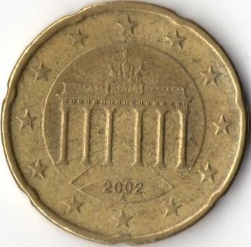 Anche questa è con doppio bordo. 20cent Germania 2002, Zecca di Stoccarda.