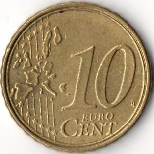 Questa invece è la moneta italiana da 10cent del 2002 con doppio bordo.