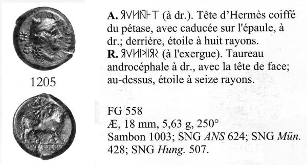 E' un bronzo di Teanum Sidicinum (Teano). Classificato al n.456 da Rutter su Historia Numorum.