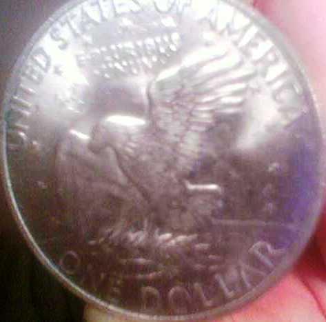 Il dollaro invece potrebbe essere in argento, controlla se sotto il collo di Ike c'è una piccola lettera S (non mi pare di vederla, ma la foto non è granchè). Se c'è è in argento, valore una decina di euro, altrimenti cupro-nickel come l'altra, valore 1-2 euro.