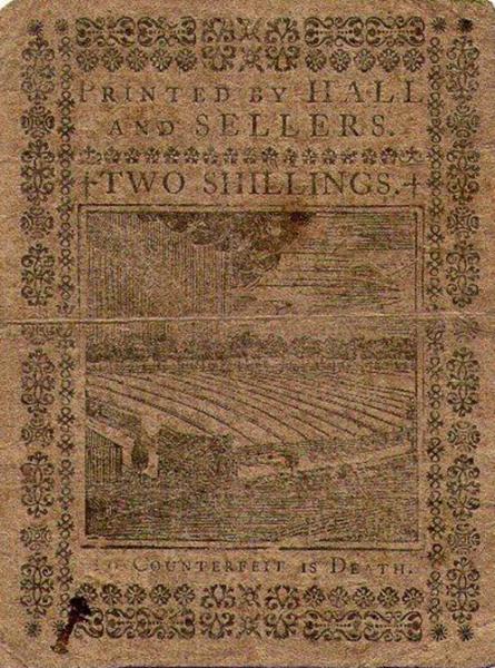 Nella foto, un biglietto da 1 shlilling e 6 pence del New Jersey, del 1776, conservato leggermente meglio del mio :P