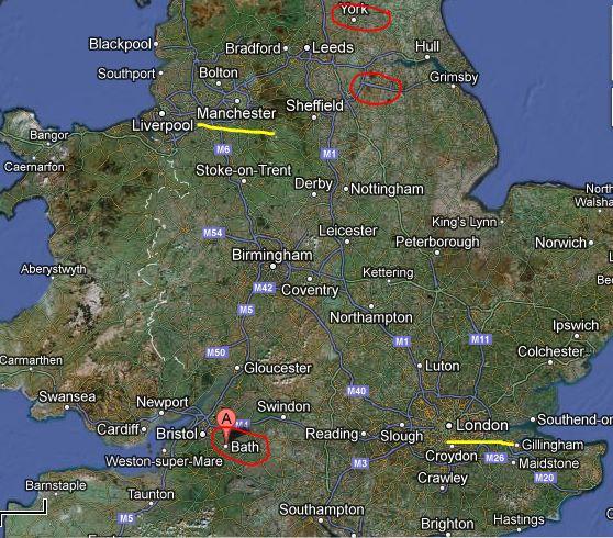 Considera che Cancun è arrivato a Manchester/Manucium e io via Londra/Londinium. Per cui Bath è in una zona al di fuori dell'area dove eravamo o siamo transitati.