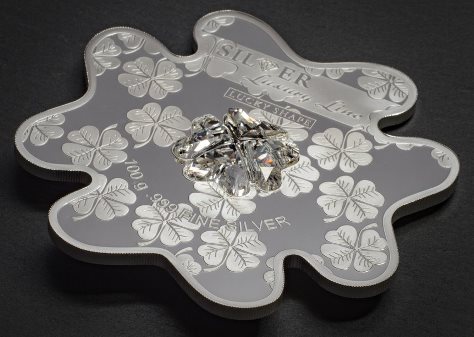 20 Dollari a quadrifoglio del 2016 da 100 grammi in argento e cristallo Swarovski.