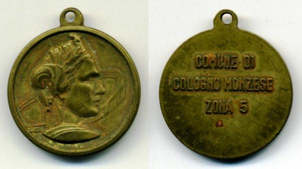 Medaglia del Comune di Cologno Monzese, coniata per una manifestazione locale, forse una corsa su strata per le vie della città.