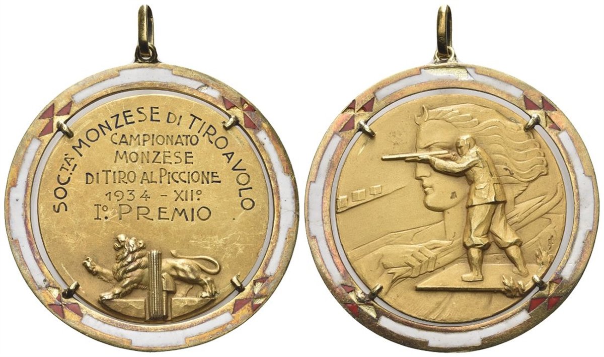 Volevo segnalare questa medaglia della prossima asta Ranieri https://numismaticaranieri.it/lottischeda/31716-monza-ventennio-fascista-dal-1923-al-1943-medaglia-i-premio-campionato-monzese-di-tiro-al-piccione-1934-a-xii.aspx