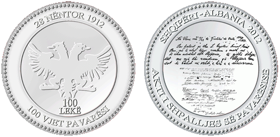 In occasione dell'anniversario dei 100° anni di indipendenza dell'Albania dall'Impero Ottomano, vi presento i seguenti monete (2012)