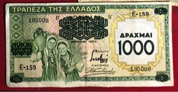 ho comprato questa banconota da 1000 dracme 1939 , P111 (sovrastampa di una banconota da 100 dracme); sul sito banknote.ws, ci sta questa nota: